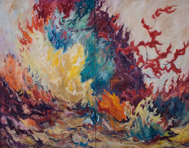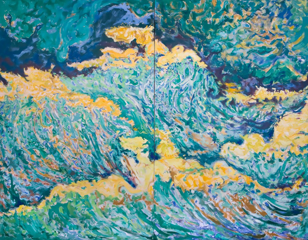 October Night, 1976, #001407, 2.66 metres by 215 cm., Oil on Canvas, Dipytch, Collection of WKP Kennedy GalleryDeep Bay, 1974, 2.66 metres by 215 cm., Oil on Canvas, Dipytch, Collection of Sudbury Art GalleryGolden Rod Wave, 1976, #001481, 2.66 metres by 215 cm., Oil on Canvas, Dipytch, Collection WKP Kennedy GalleryRadiance, 1974, #001527, 2.66 metres by 215 cm., Oil on Canvas, Diptych