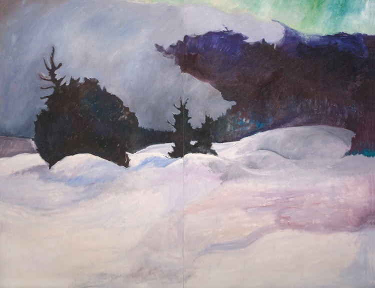 Parry Sound Landscape, 1976 #001435, 2.66 meters by 213 cm., Oil on Canvas, Dipytch, Collection of WKP Kennedy Art Gallery